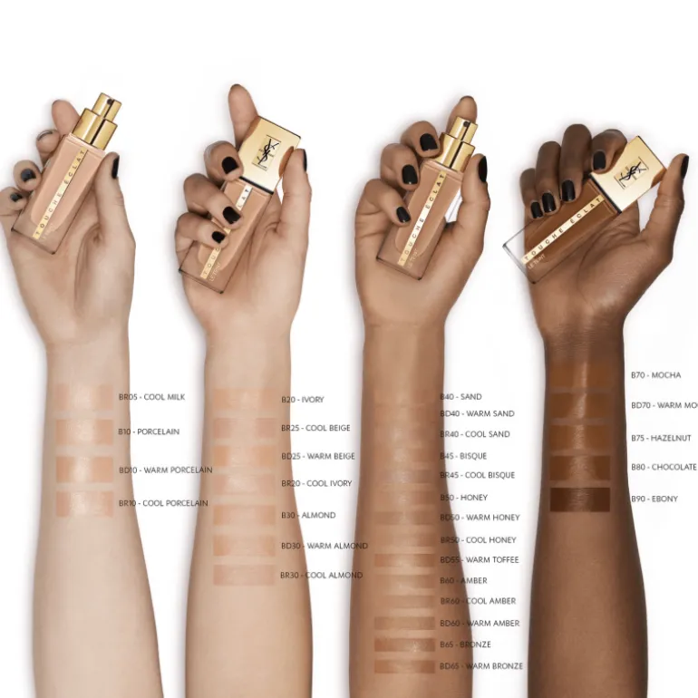 Touche Éclat Le Teint de Yves Saint Laurent, es la primera base de maquillaje de cobertura total, la tecnología de recubrimiento de Yves Saint Laurent proporciona una cobertura completa, con una hidratación de hasta 24 horas. Enriquecida con flor de caléndula y malva, ayudando a proteger la piel de la sequedad y contaminación. La piel parece más brillante, más uniforme, probado bajo control dermatológico y apto para la piel sensible.