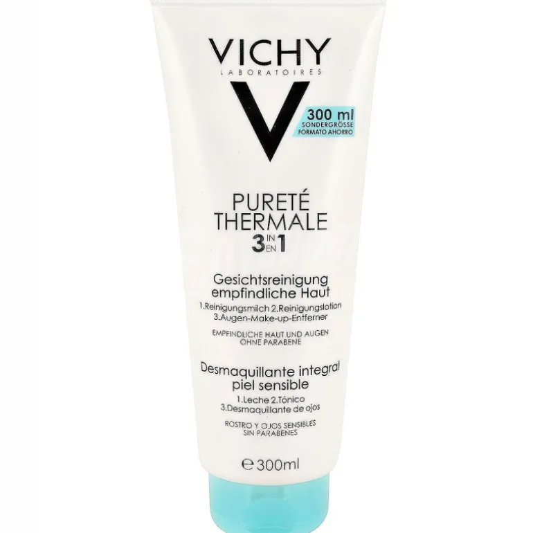 El Desmaquillante Integral Purete Thermale combina en un solo producto una leche limpiadora + un tónico + un desmaquillante de ojos. La asociación de agentes limpiadores ultra-eficaces y ultra-suaves en una leche-gel muy fresca, ofrece una limpieza y un desmaquillado ultra-rápido y ultra-fácil, que elimina eficazmente el maquillaje respetando tu piel sensible.