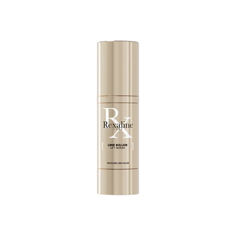 Line Killer Lift Serum, suero antiarrugas efecto lifting. Es el sérum antiarrugas dedicado a la pérdida de contornos faciales, formulado con el ácido hialurónico superhidratante Rx2, 15 veces más penetrante que el ácido hialurónico estándar*, y un complejo bioactivo a base de lipopeptidos capaz de dirigir su acción hacia los fibroblastos para estimular la producción de colágeno tipo I en un factor de 2** y la producción de elastina en un factor de 9**.