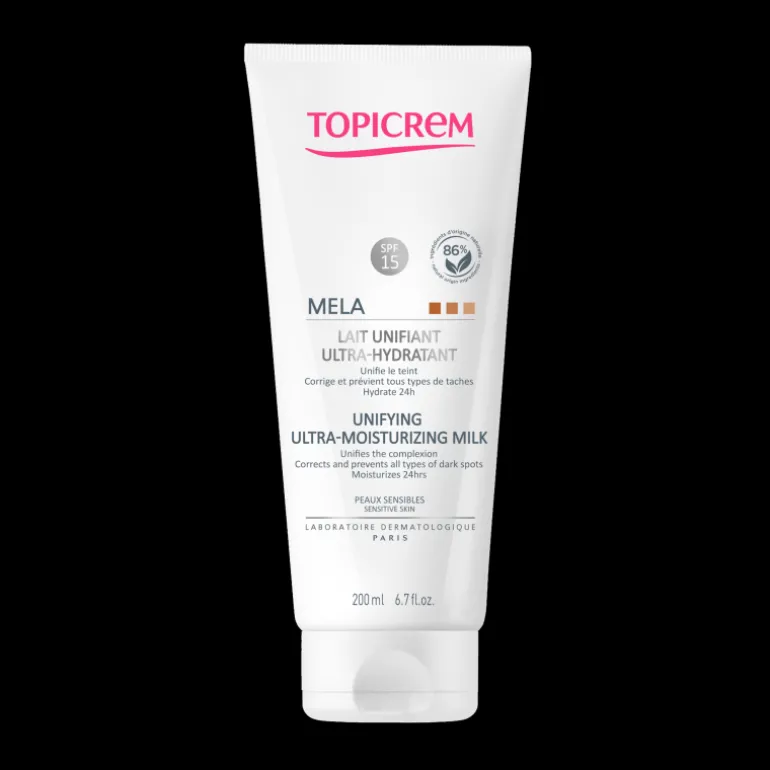 Leche corporal unificadora para pieles sensibles con un SPF15 que corrige y previene las manchas, unifica la tez e hidrata intensamente durante 24h.
