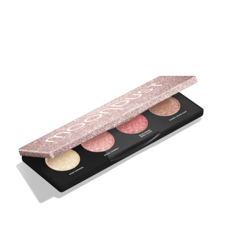 ¡Por fin llega Moondust Space Rider! Una paleta de 4 sombras inspirada en los colores del espacio para un glow de otra galaxia que contiene la estrella viral Moondust Space Cowboy.