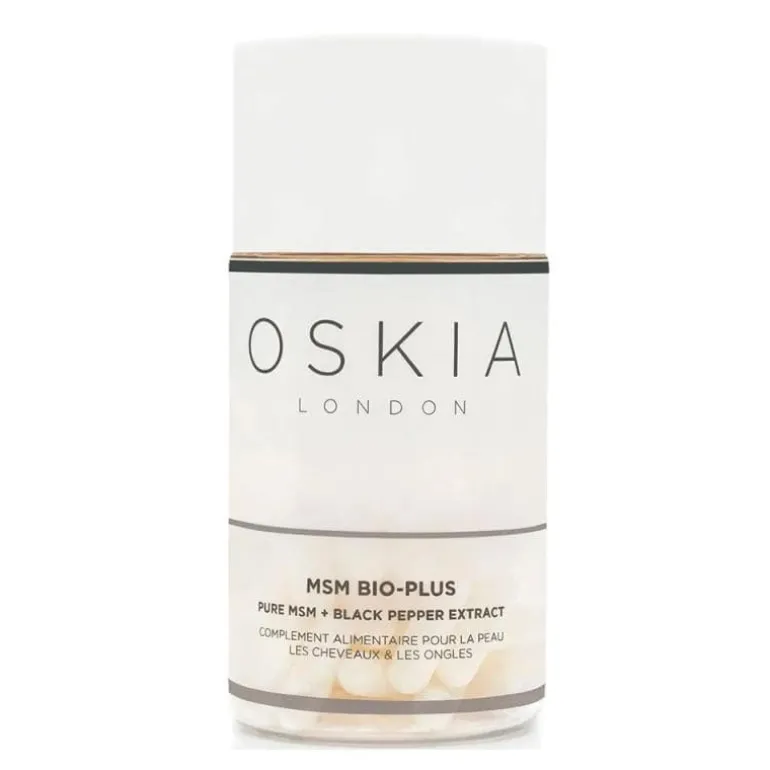 MSM Bio-Plus es un suplemento único diseñado por OSKIA que utiliza un extracto patentado de pimienta negra para mejorar los beneficios de acondicionamiento de la piel del galardonado Pure MSM. El MSM, un compuesto de azufre orgánico natural, apoya la producción de colágeno y elastina, dos proteínas vitales para un cutis saludable y para mantener el buen estado del cabello y las uñas.