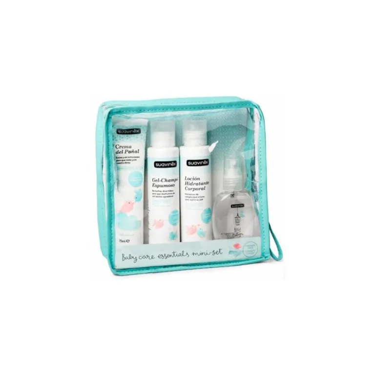 El neceser incluye: Crema del pañal 75ml + Gel-champú espumoso 100ml + Loción hidratante corporal 10ml + Colonia baby cologne 50ml