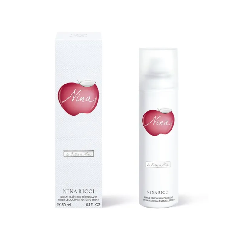 Nina Eau de Toilette Desodorante Spray 150ml. Con su frescor instantáneo y su eficaz acción antiperspirante, este desodorante en aerosol deja la piel suave e hidratada.