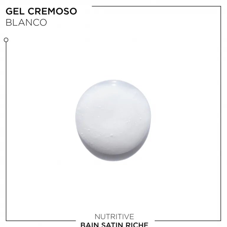 Bain Satin Riche tiene una textura de gel blanco cremoso, espumoso y sin fricción.