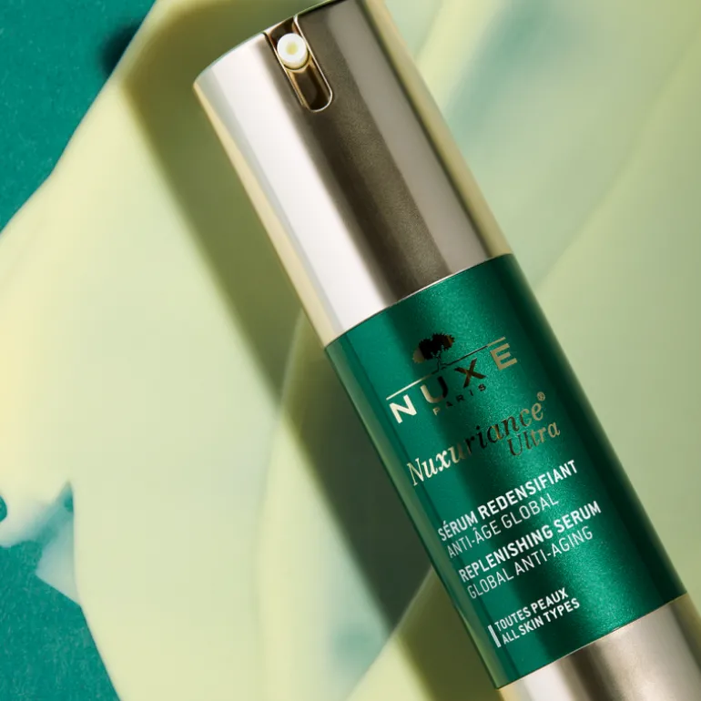 Nuxuriance® Ultra Sérum. Sérum redensificante antiedad global. Para todos los tipos de piel. Contiene 95.8 % de ingredientes de origen natural.