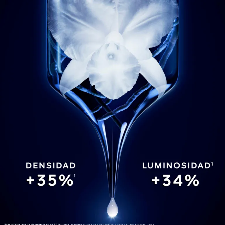 Por primera vez, el concentrado oleoso y el agua de orquídea se han combinado en una tecnología totalmente nueva¹ para reactivar el equilibrio de las diez capas fundamentales de la piel², necesario para su regeneración. El concentrado oleoso de orquídea estimula el flujo lipídico de la piel rellenándola con nutrientes como los omega 6, 7 y 9, conocidos por ser esenciales para el buen funcionamiento de una piel joven². El agua de orquídea estimula el flujo hídrico. Favorece la producción, absorción y redistribución de moléculas hídricas como el ácido hialurónico y la taurina a diferentes niveles de la piel².