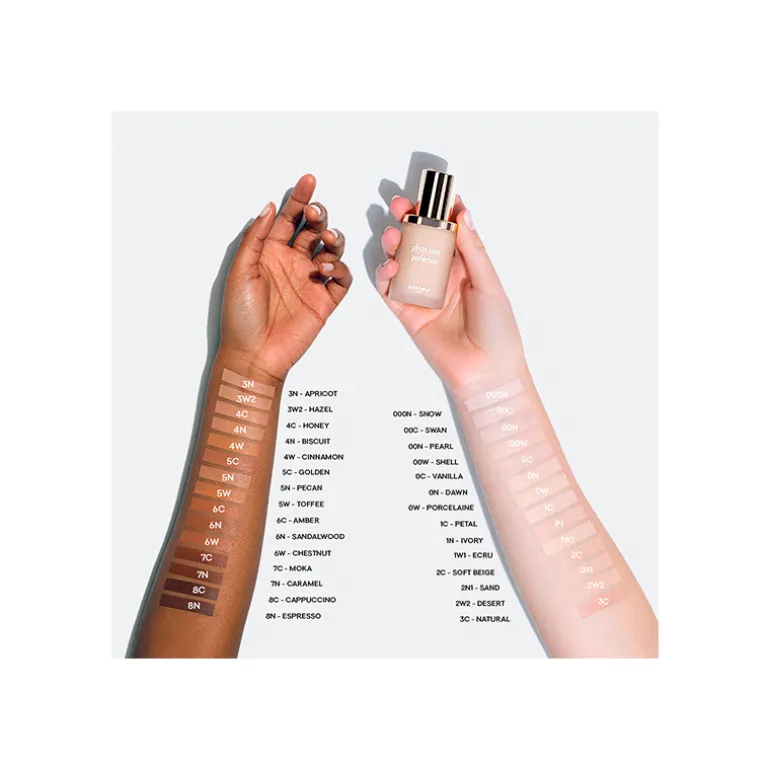 La gama Phyto-Teint Perfection tiene 11 niveles de intensidad para adaptarse a todos los colores de piel, desde 000, el más claro, hasta 8, el más oscuro.