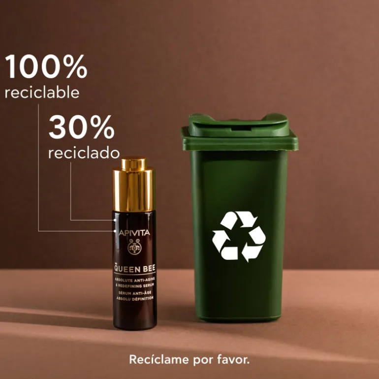 APIVITA Queen Bee Sérum Redensificante Antiedad Absoluto. La quintaesencia vital de la colmena fusiona armoniosamente las propiedades rejuvenecedoras de la jalea real con los efectos regeneradores y protectores del propóleo y la miel, para conseguir la gama suprema QUEEN BEE.