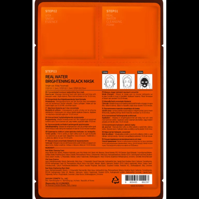 Paso 3. Real Water Brightening Black Mask: con una combinación de agua de mar rica en minerales de la isla de Jeju y ceramidas, esta máscara ayudará a capturar todos los nutrientes.