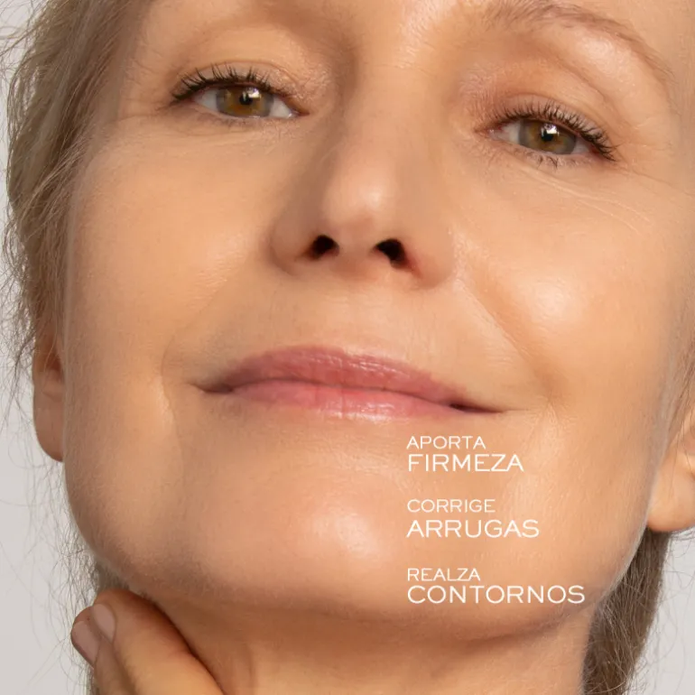 +2 semanas: Resultados clínicos probados en 5 tipos de arrugas: frente, glabelares, nasolabiales, patas de gallo y líneas horizontales del cuello***. CONTORNOS: + 8 semanas: Las mujeres coinciden en que la piel tiene un aspecto reafirmado** *Prueba instrumental, 26 mujeres. **Resultados clínicos, 49 mujeres. ***Autoevaluación, 49 mujeres. TEXTURA LO QUE MARCA LA DIFERENCIA Una textura untuosa y envolvente ideal para los masajes faciales nocturnos. Deja la piel hidratada sin sensación grasa ni pegajosa. QUÉ MÁS HAY QUE SABER Para rostro y cuello.