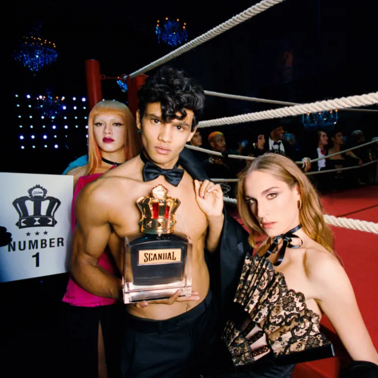 El nuevo SCANDAL POUR HOMME de Jean Paul Gaultier. Elegancia, músculos y guantes de boxeo: el nuevo SCANDAL POUR HOMME de Jean Paul Gaultier hace una entrada triunfal con su eau de toilette masculino y sensual, energizante y muy adictivo. Asaltando los sentidos y coronado de victorias, este rey del cuadrilátero cautiva a sus seguidores con su brillo y deja a su paso una contrastante estela viril de amaderado oriental intenso.