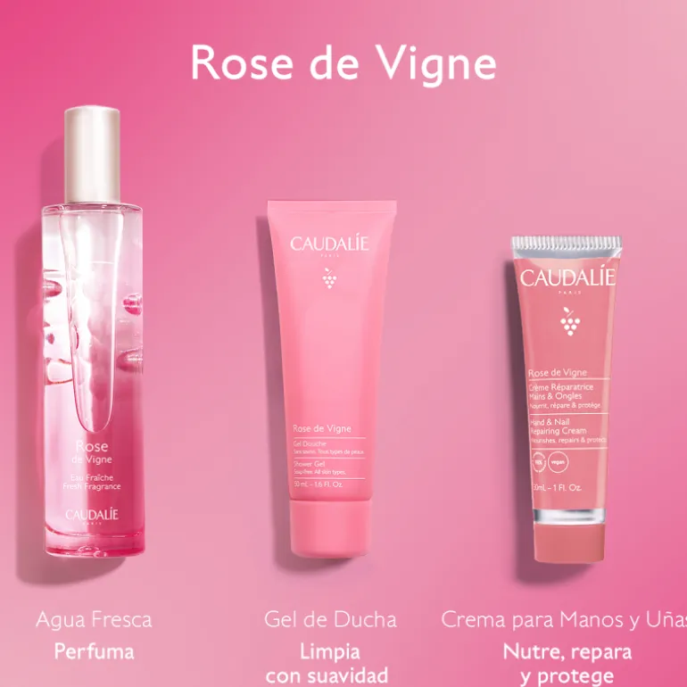 Déjate seducir por el Trío Rose de Vigne: tratamientos corporales perfumados con nuestra fragancia especialmente suave y romántica con notas aciduladas de ruibarbo.