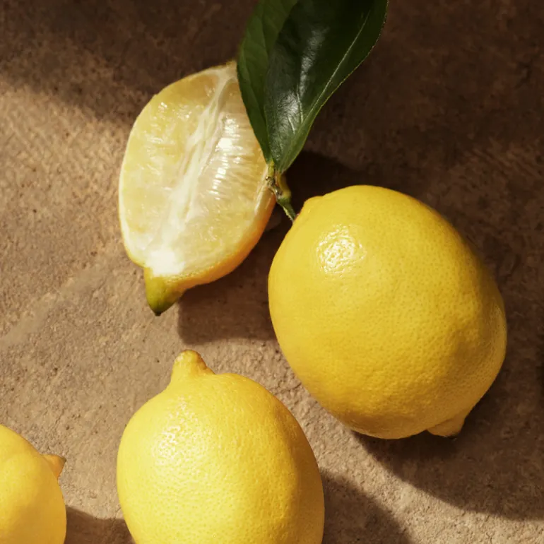 La fragancia se abre con notas frescas y cítricas de Limón.