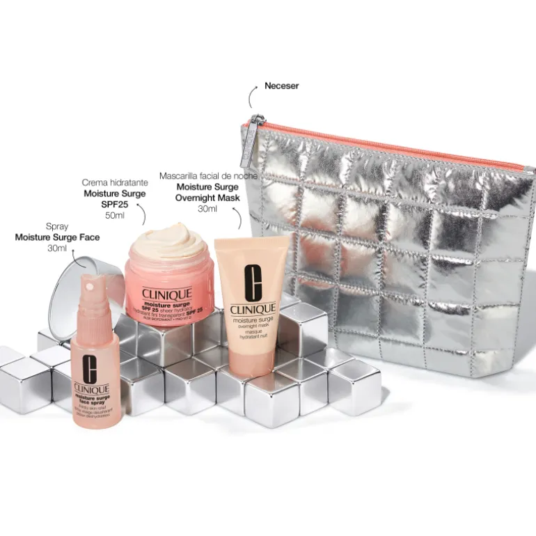 Set Moisture Surge SPF25 Crema Hidratante de Clinique. Mantén tu piel radiante con este cofre que incluye tus tres productos hidratantes favoritos, incluido nuestro hidratante con SPF favorito de los fans de Clinique.