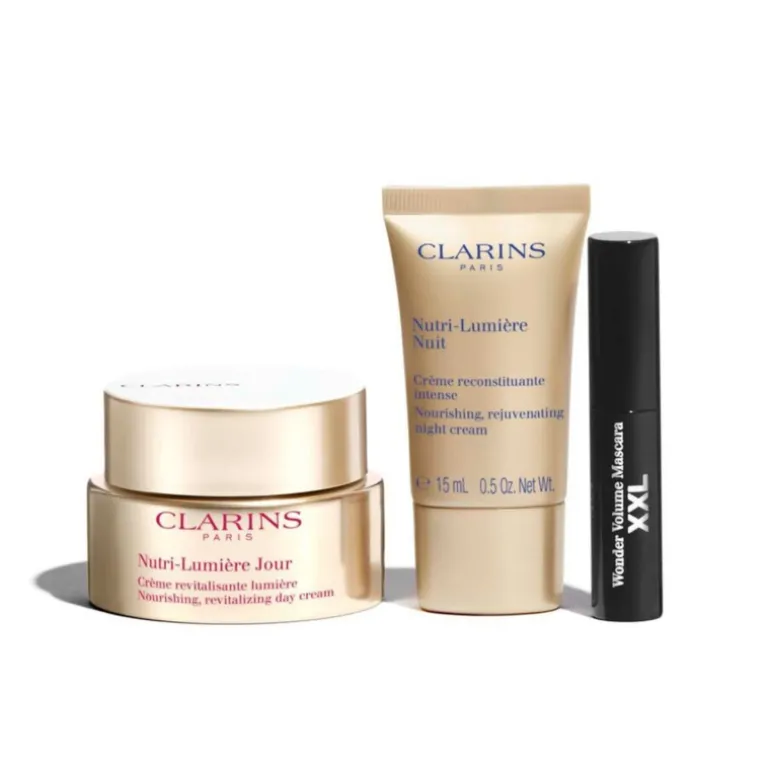 Set Clarins Nutri Lumiere & Wonder Volume Mascara XXL. El Cofre Nutri-Lumière de Clarins es el tratamiento antiedad ideal para pieles maduras que han perdido luminosidad.