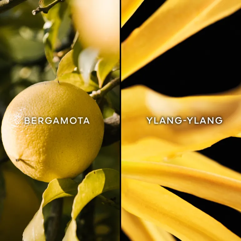 Este perfume sumamente facetado se abre con notas frescas y adictivas de bergamota.