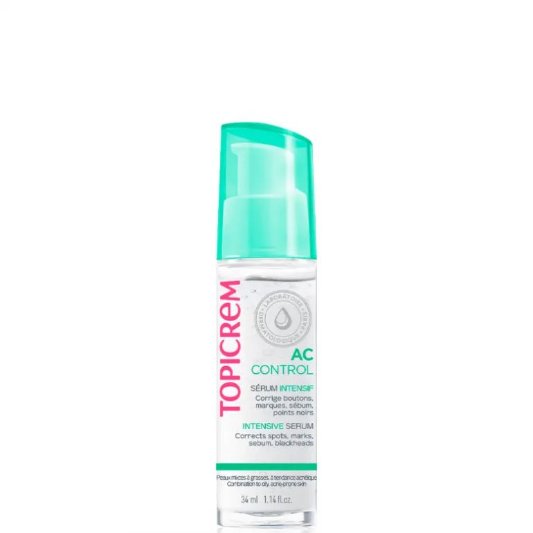 Topicrem AC Control Sérum intensif es para el uso facial, corrige las imperfecciones, alisa y purifica la piel para obtener resultados visibles a partir de 2 noches. También hidrata, exofólia, calma y tiene poder antioxidante protector.