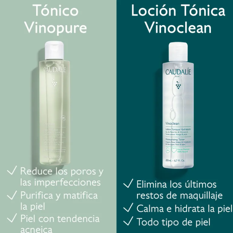 Caudalíe vinoclean loción tónico hidratante elimina las últimas impurezas y restos de maquillaje, a la vez que tonifica la piel.
