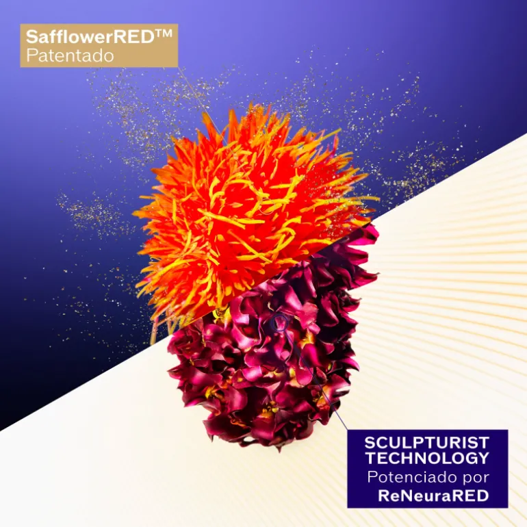 Con una combinación de 3 tecnologías : Alta concentración de SafflowerREDTM patentado, Sculpturist Technology, ReNeuraRED TechnologyTM